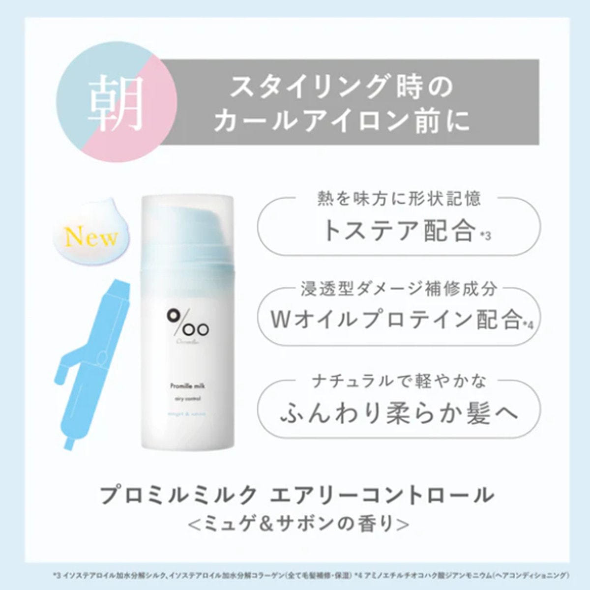 ※スタイリング前にご使用いただく場合は、塗布後にドライヤー等で乾かし、コテやアイロンでスタイリングしてください。