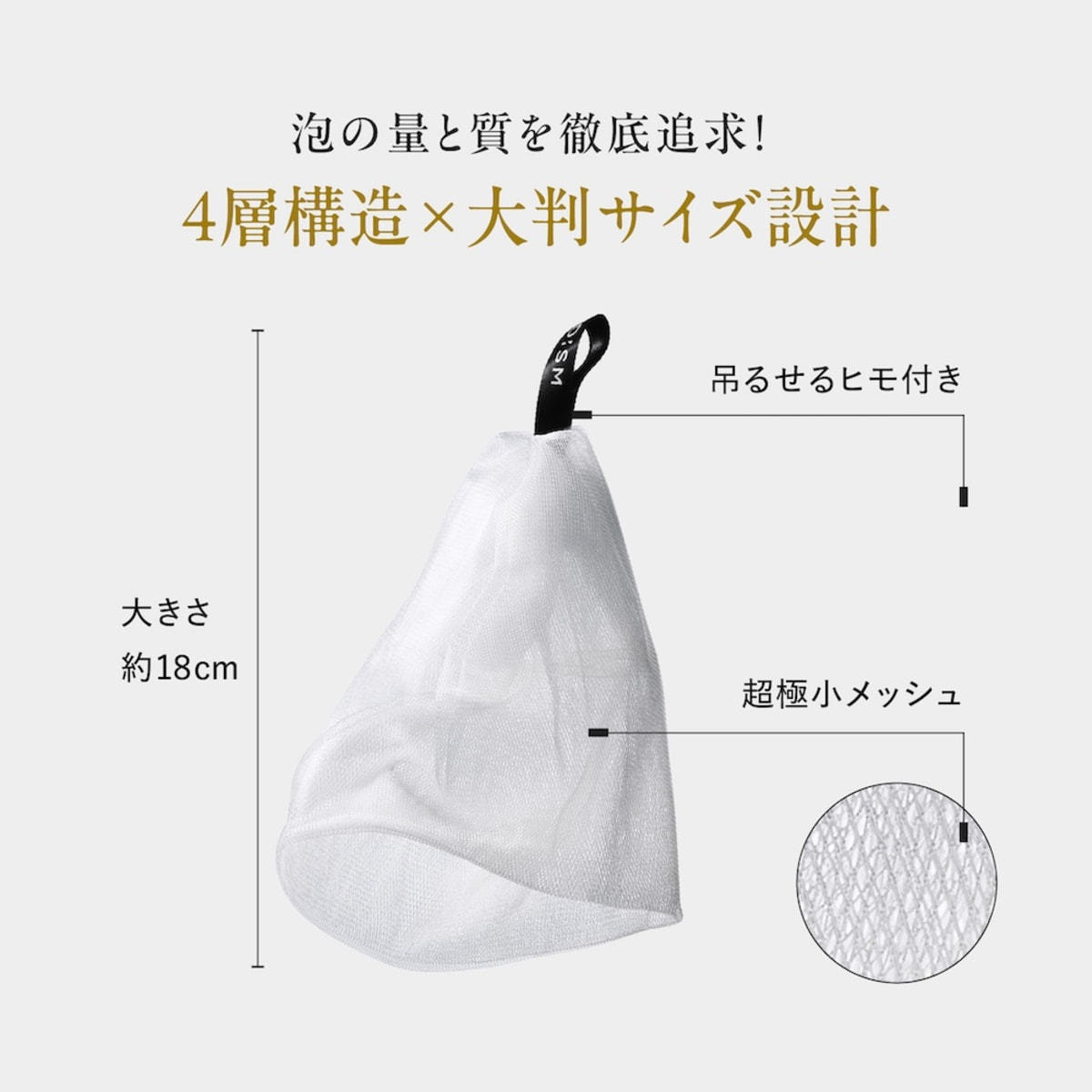 【泡の量と質にこだわった4層構造の大判ネット】